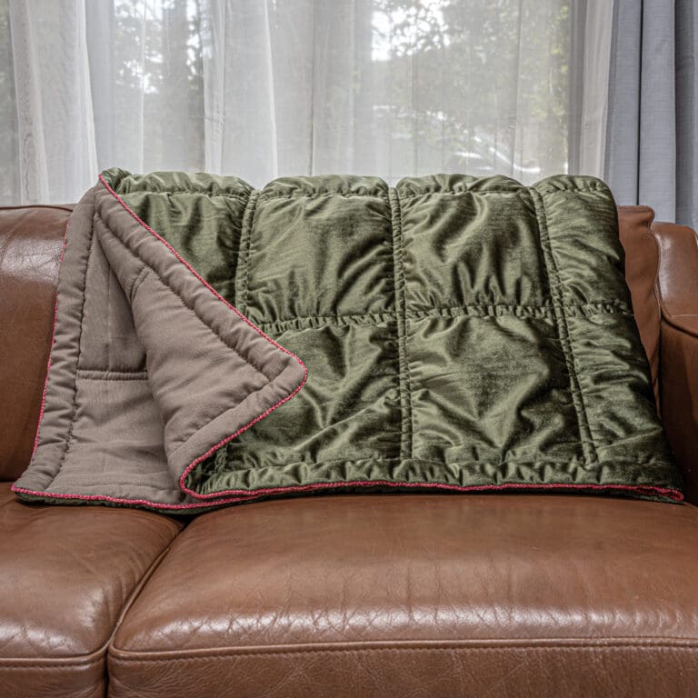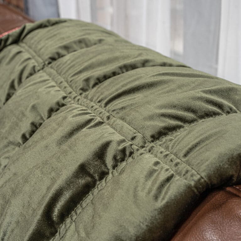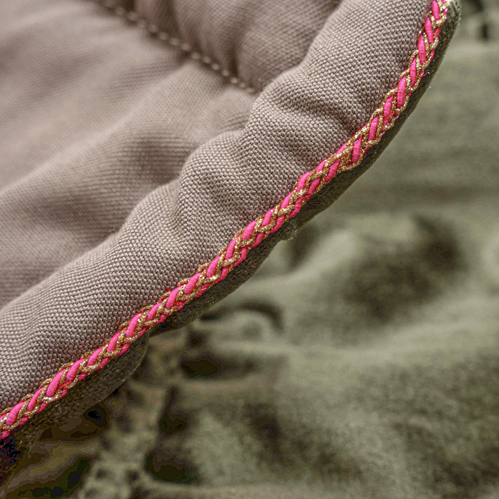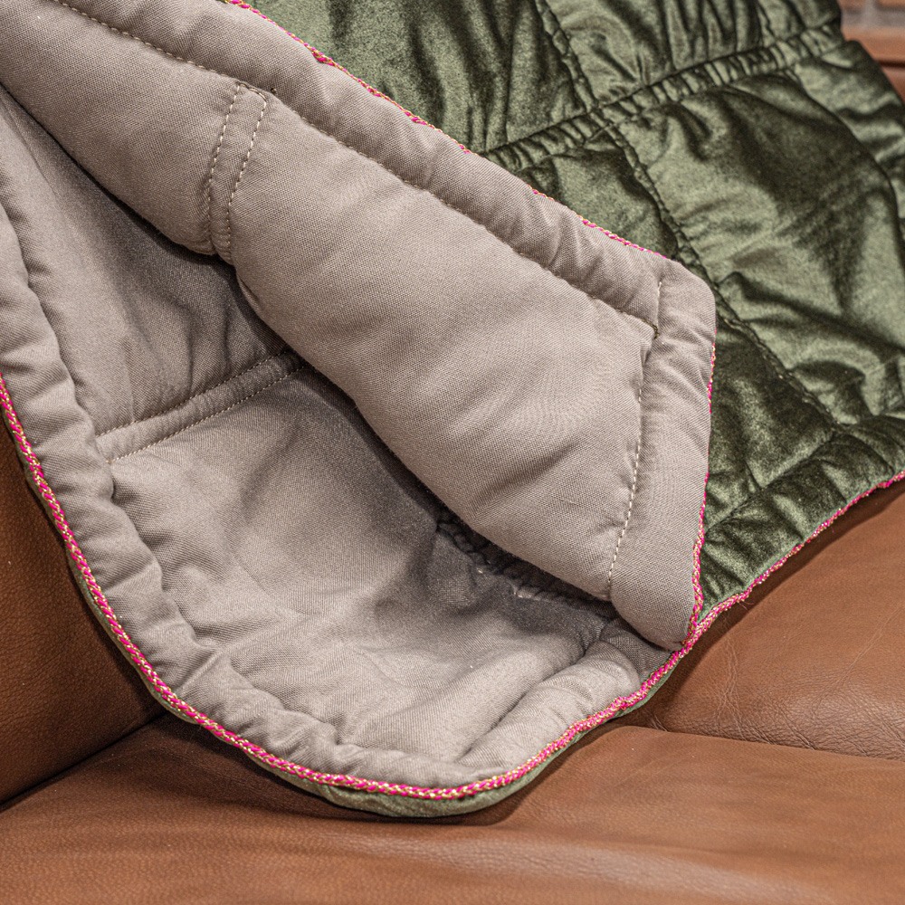 Bringing boho-luxe styling to your space, this gorgeously decadent olive & fuchsia throw blanket will look and feel wonderful draped on any bed, sofa or armchair. Delightfully elegant whilst also being so cosy and indulgent, this fully lined blankets is rich velvet on one side, and contemporary stone coloured cotton on the reverse, edged in beautiful gold threaded cable. This is boho-luxe styling to update your space today and to see you comfortably through the next style decade and beyond!