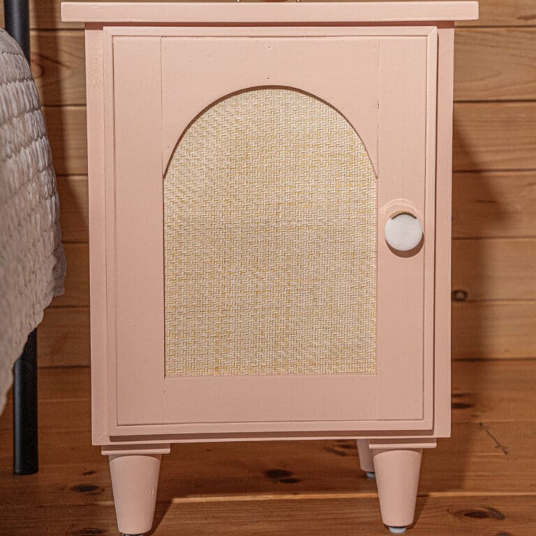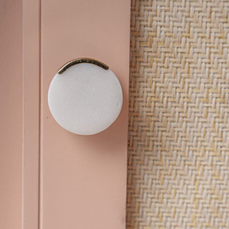 One of our best-selling and most adorable designs, this bedside table, shown here in Nude, will bring joy and style to any bedroom space. Beautifully crafted with an inset rattan arch and our contemporary white marble and gold handles, and with practical shelving inside, this piece is simply a delight!